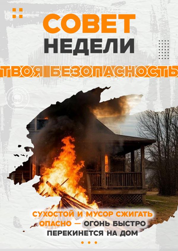 В радиусе 10 метров от места сжигания не должно быть того, что может загореться, например, сухой травы.