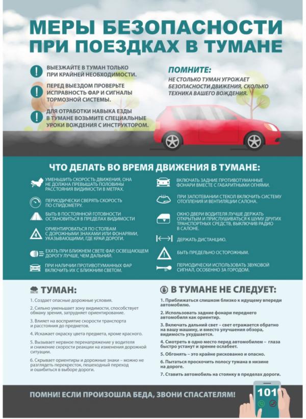 Чтобы максимально обезопасить себя во время тумана, необходимо соблюдать следующие правила: